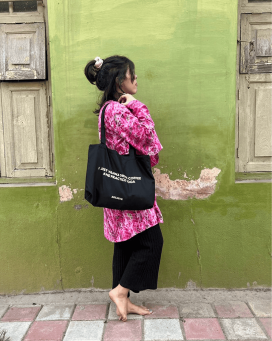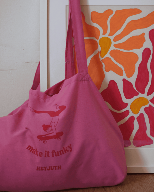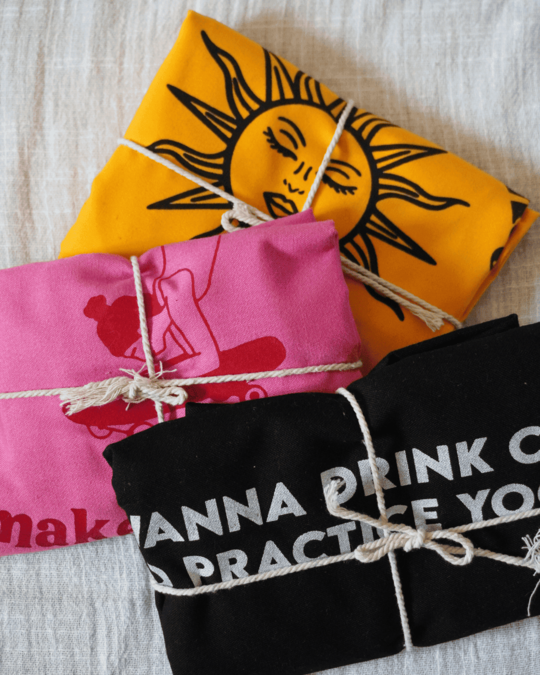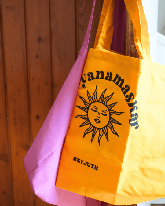Confeccionada en algodón y con el tamaño perfecto para llevar contigo tu MacBook, tus libros espirituales (o tu Vogue, nadie juzga) en estas tote bags diseñadas para la yoguini urbana. Con estampados como “Make it Funky” & soles psicodélicos, estas tote bags son el equilibrio perfecto entre el zen y el estilo.